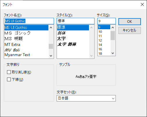 システムに登録されているフォントを選択するダイアログの表示方法を紹介します。