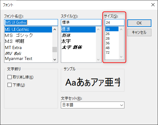フォントの最大/最小サイズの設定