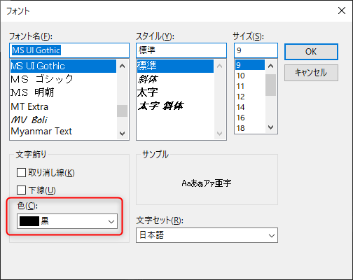 フォント参照ダイアログでは、フォントの色を設定することもできます。
