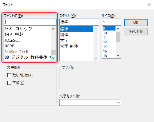 等幅フォント(固定幅フォント)だけを選ぶようにする