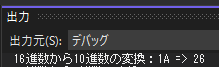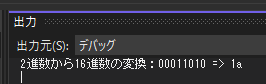 Console.WriteLine($"2進数から16進数の変換:{ bit } => { hex }");