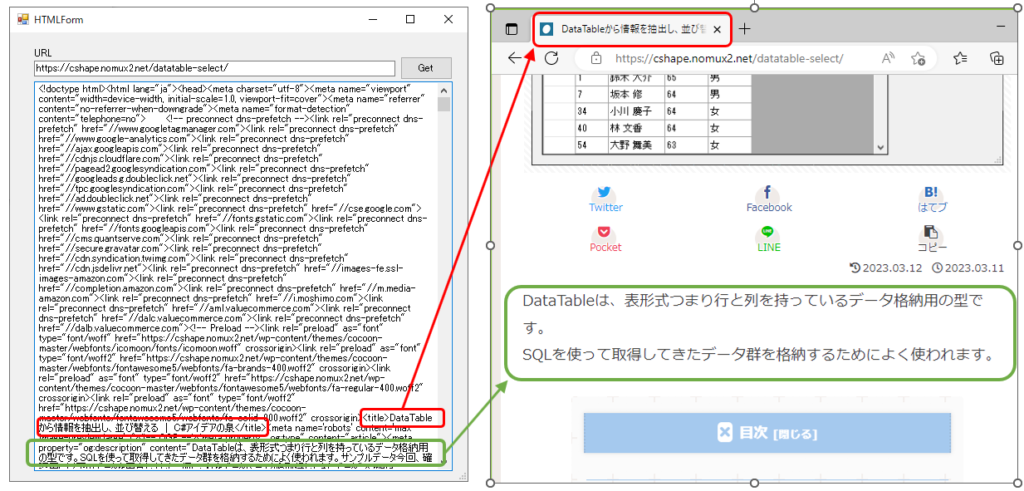 URLからHTMLソースを取得する方法を記載します。